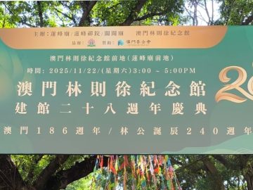 為紀念民族英雄林則徐巡閱澳門一百八十六周年、林公誕辰二百四十周年,及澳門林則徐紀念館建館二十八周年,蓮峰廟值理會及澳門林則徐紀念館前日舉辦系列活動,以 […]