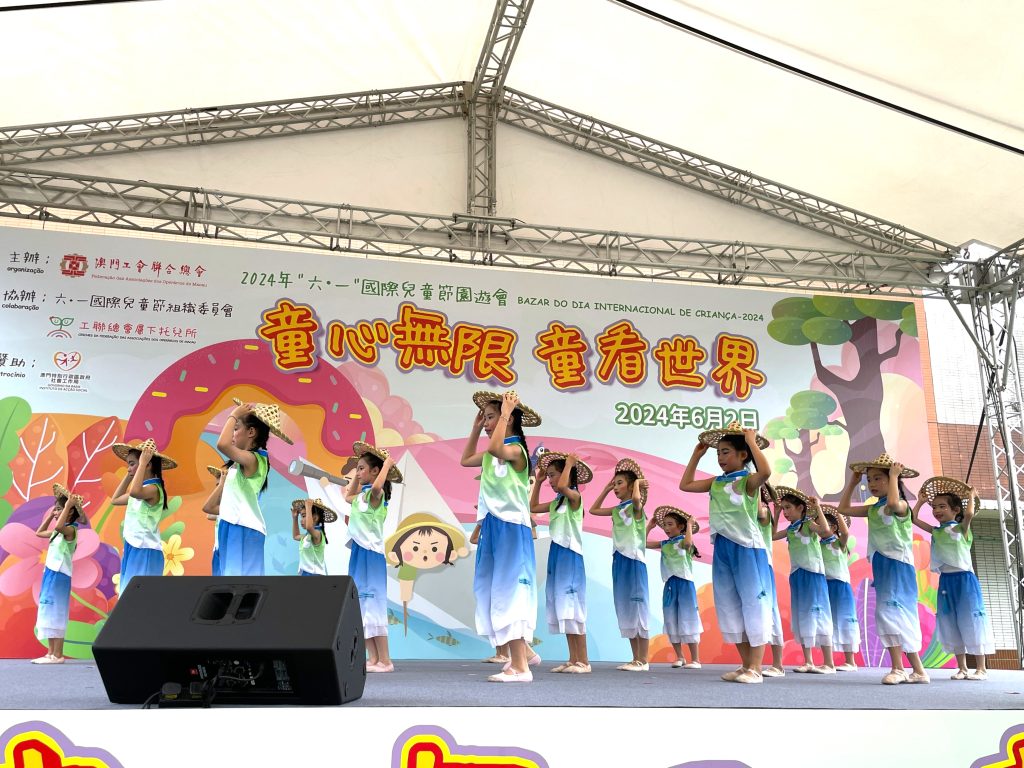 我校小學舞蹈隊於過去的周末參與由澳門工會聯合總會主辦的“2024年六•一國際兒童節園遊會”演出活動。今年活動以“童心無限.童看世界”為主題,我校同學在歡快、熱鬧的環境下,為台下觀眾送上舞蹈節目《漁夢漁陽》,及後更獲得了一眾掌聲。冀望學生除了能透過活動感受節日氣氛,提升自信心外,亦能增加對《兒童權利公約》的認識。