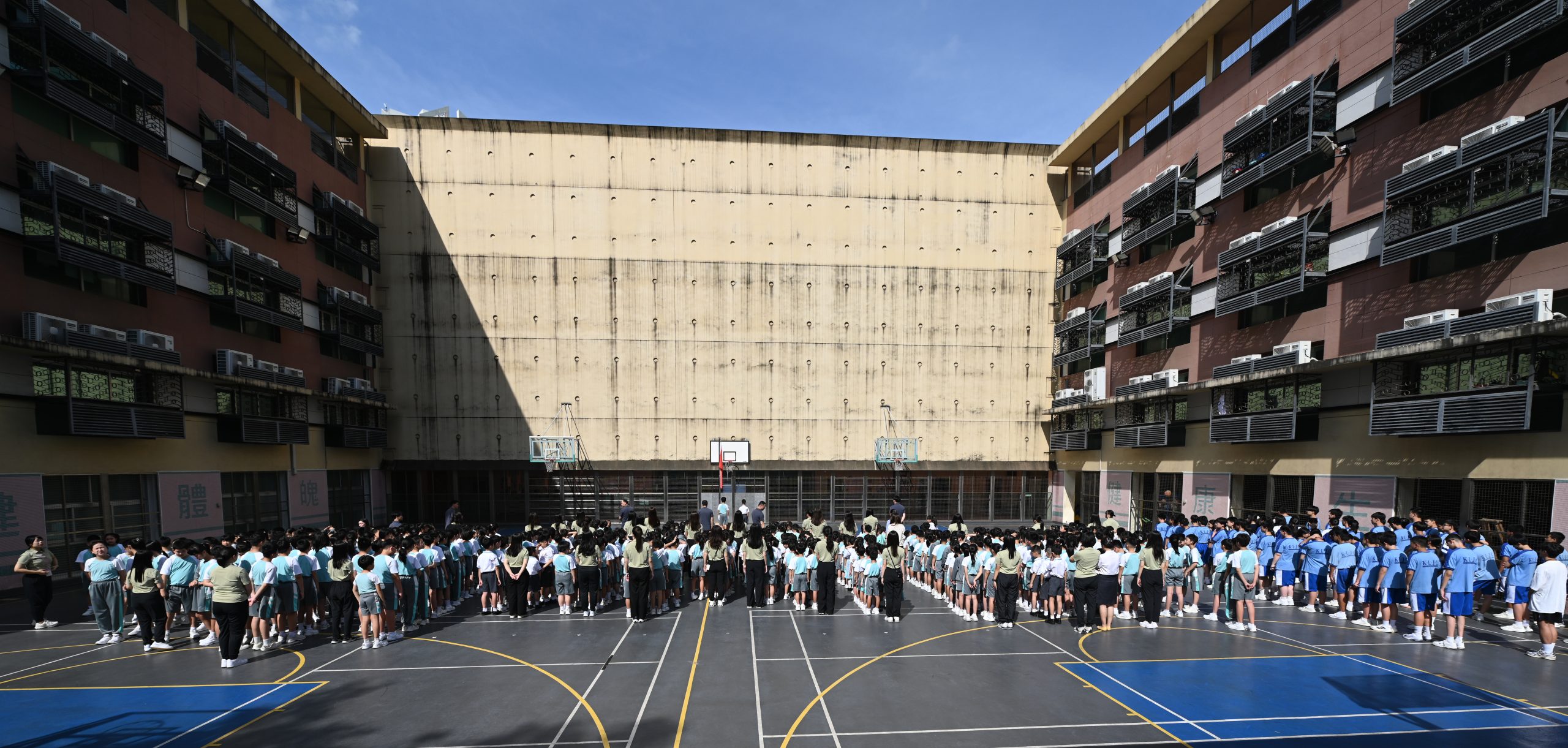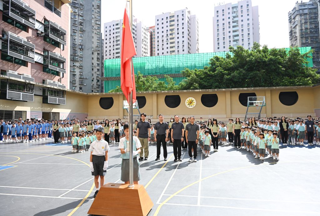學生們身穿整齊的服裝齊聚操場,在國歌的激昂旋律中,升旗手緩緩將國旗升起,全體師生自覺立正,目光注視國旗,表達對國家的敬意。