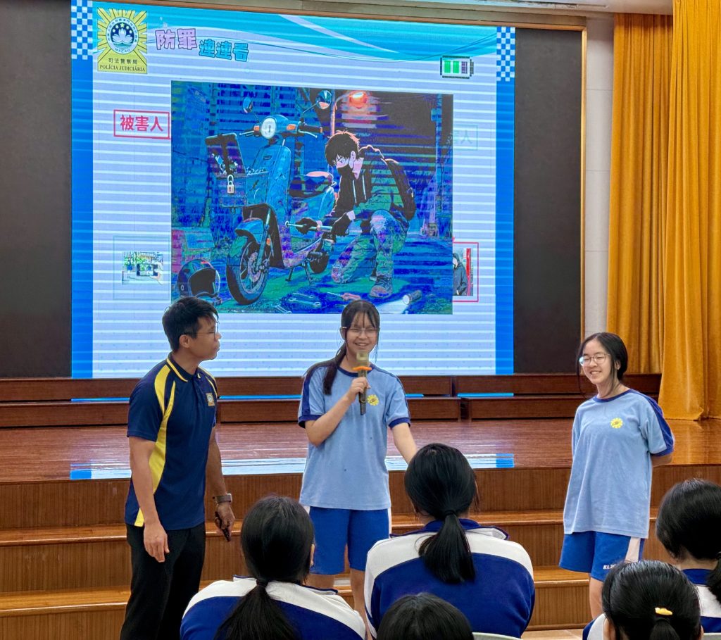 為加深同學們對常見犯罪的種類及遇見犯罪時的應對方法,我校邀請了澳門司法警察局關注少年組的兩位督察來校為同學們開了一場別出生面的周會。