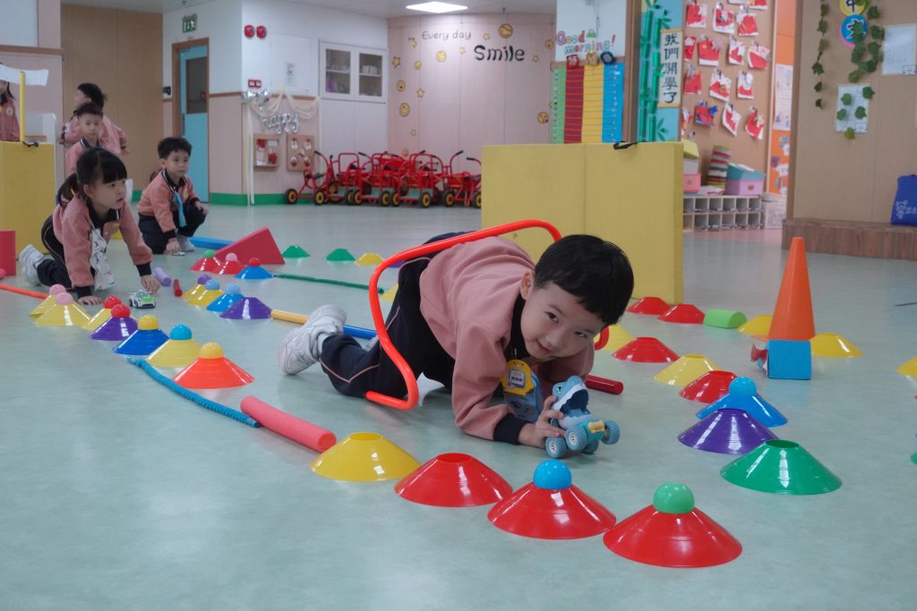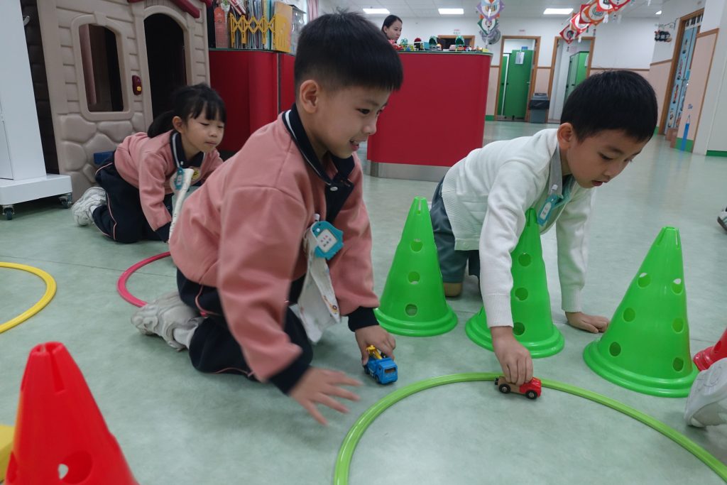 各班級分別於不同日期進行了「小小賽道工程師」及「小小賽車手」體驗活動,孩子們利用平衡木、三角錐、呼拉圈等體能器材,搭建屬於自己的賽道,並化身小賽車手盡情奔馳,現場笑聲不斷。