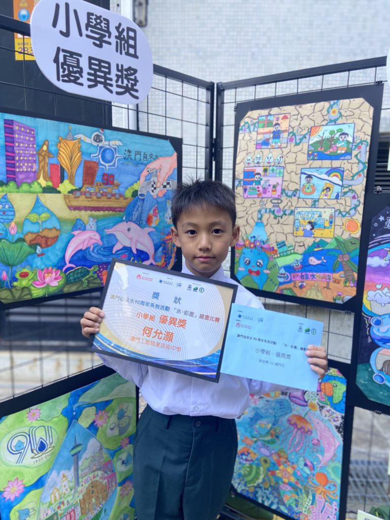 11月22日,由澳門自來水公司舉辦的90週年系列活動”水•彩畫”繪畫比賽中,我校何允灝同學榮獲小學組優異獎。