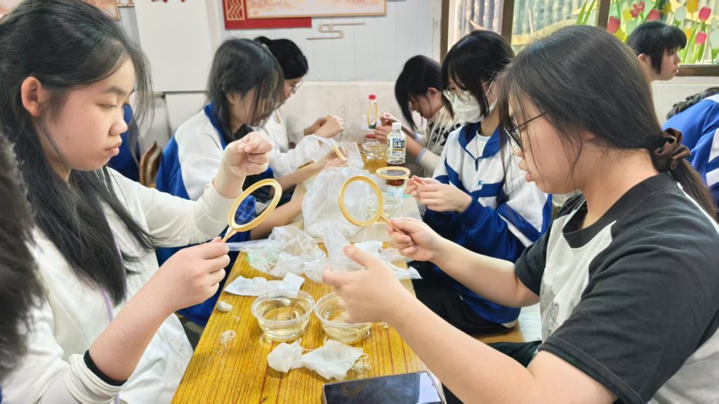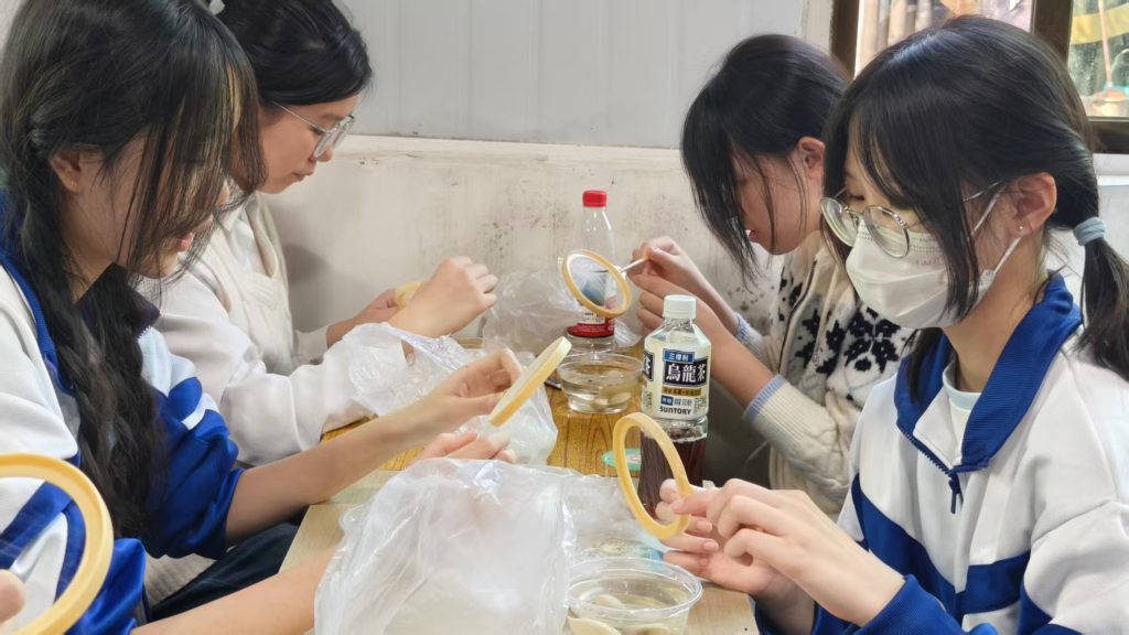 午餐後,同學們走進「香雲紗非遺文化園」,在文化館講解員的帶領下,認識國家級非物質文化遺產——香雲紗的染整技藝。同學們更親身體驗「過泥實踐」及手工藝製作,動手完成香雲紗小飾品DIY,在實踐中領略傳統工藝的精湛與匠心。