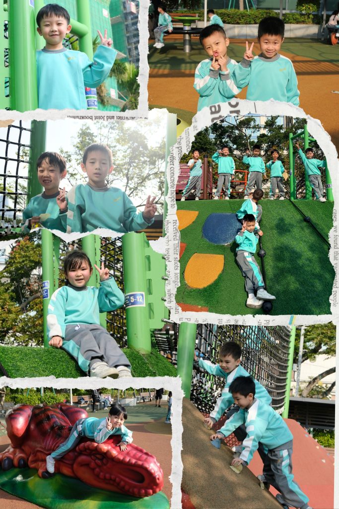 在觀音像前地拍攝大合照後,現場迅速洋溢著歡樂的玩樂氛圍,休憩區內配備兒童遊樂設施、健身設施、步行徑、茶座等休閒康樂空間,極受同學們喜愛。大家盡情暢玩,在放鬆身心的同時,不僅鍛煉了身體,更促進了身心均衡發展。其間,同學們紛紛拿出準備好的零食,與同伴及老師分享,進行野餐與趣味互動遊戲,笑聲不斷,場面溫馨熱鬧。