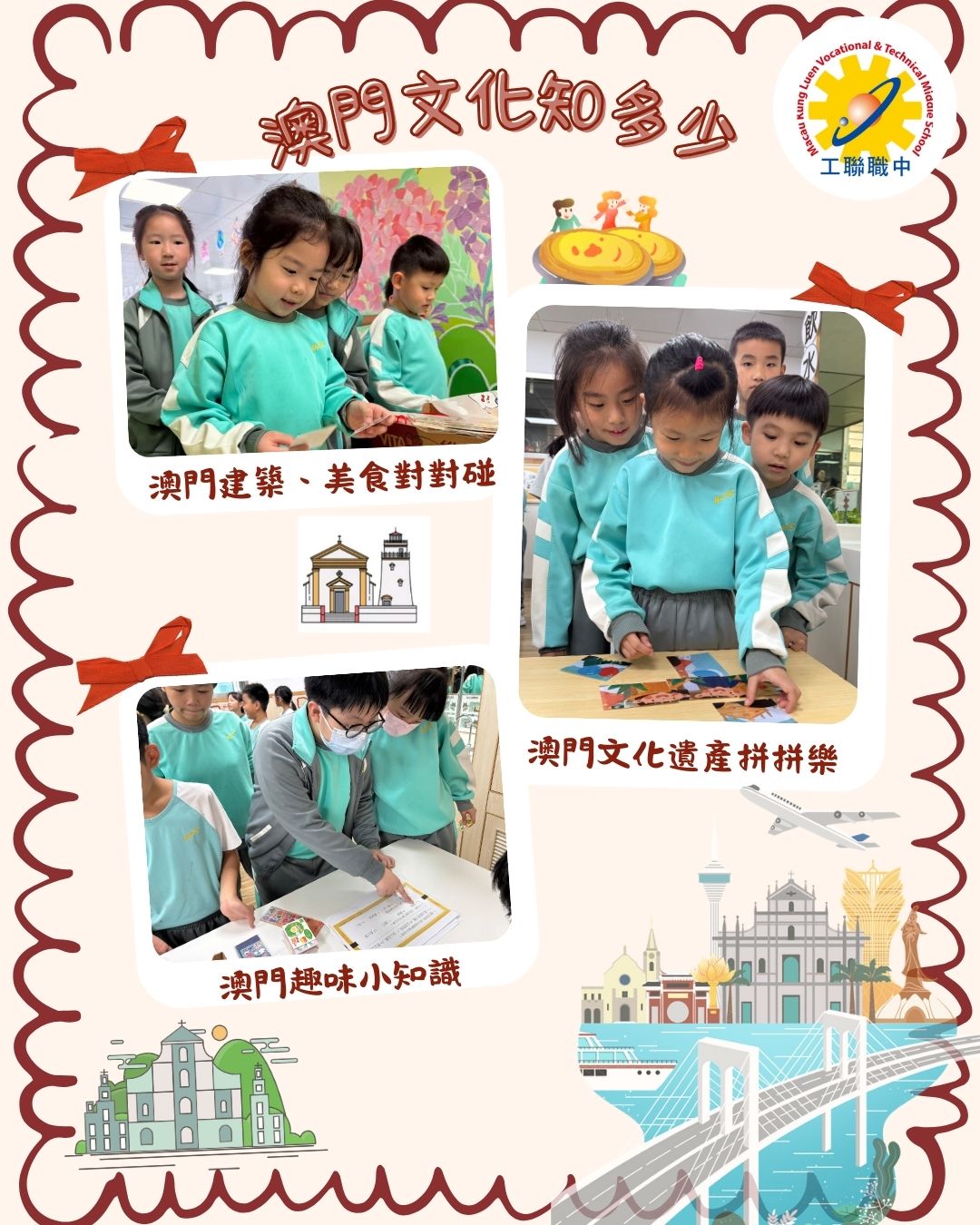本次活動以知識結合遊戲,設有多個特色遊戲攤位。其中包括「澳門文化知多少」問答遊戲,讓學生瞭解本澳的文化常識;「澳門建築、美食對對碰」、「澳門文化遺產拼拼樂」,有助學生了解澳門中西文化建築及美食特點。除此之外,動手環節同樣精彩,學生親自製作獨一無二的葡式花紋冰箱貼,在構思、塗色、剪裁的過程中充分發揮創造力,每一件作品都承載著對澳門文化的理解與喜愛。
