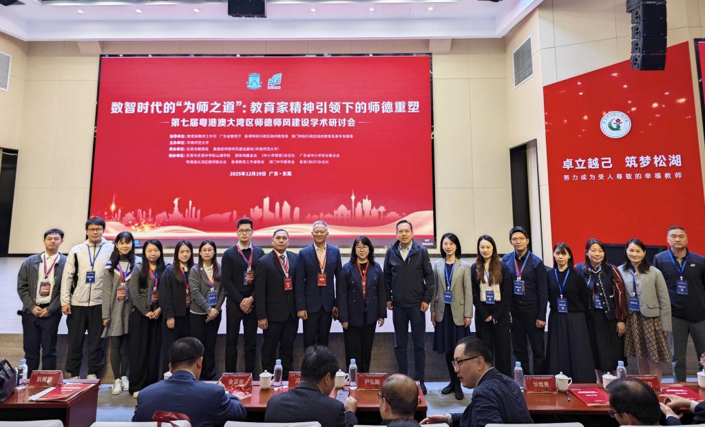 12月19日,第七屆粵港澳大灣區師德師風建設學術研討會在東莞市東莞中學松山湖學校順利召開。本次研討會由華南師範大學主辦,以「數智時代的為師之道:教育家精神引領下的師德重塑」為主題,匯聚粵港澳大灣區及全國各地近500位教育行政人員、專家學者、中小學校長、在讀師範生及教育媒體代表,共探數智浪潮下師德師風建設的新路徑與新方向。我校羅櫻櫻老師作為澳門17名與會教師代表之一,參加此次學術盛會。