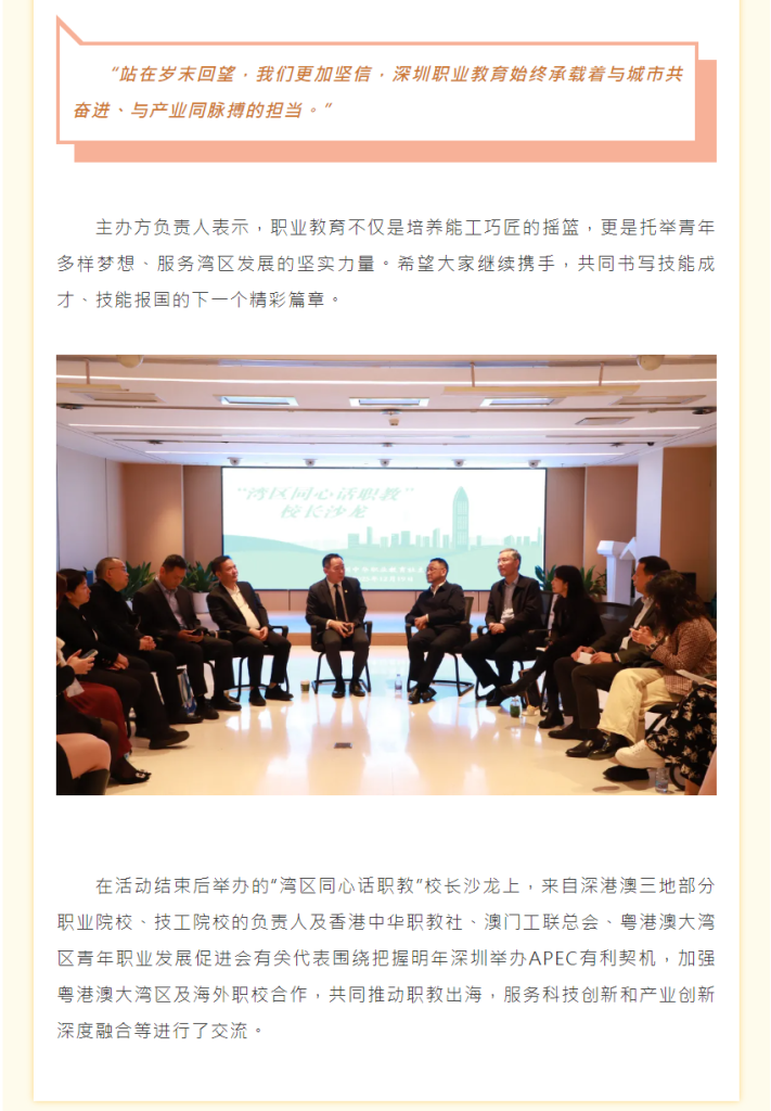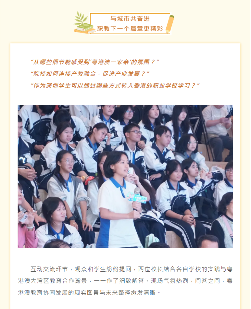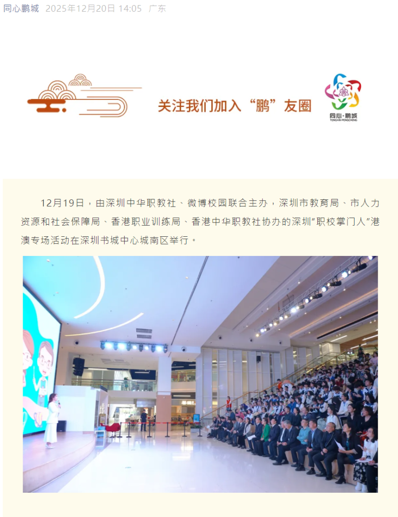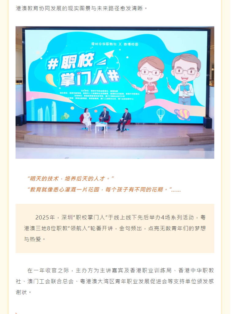 灣區聯動 “職校掌門人”為你揭開港澳職業教育面紗 Posted on 5 1 月, 2026 by irene 新聞來源︰https://wb.sznews.com/ePaper/index.html#/article?date=202512/20&id=3412853 文章導覽 « 港澳“職校掌門人”齊聚深圳共探職教協同發展新路徑法務局來我校舉辦維護國家安全法講座 »