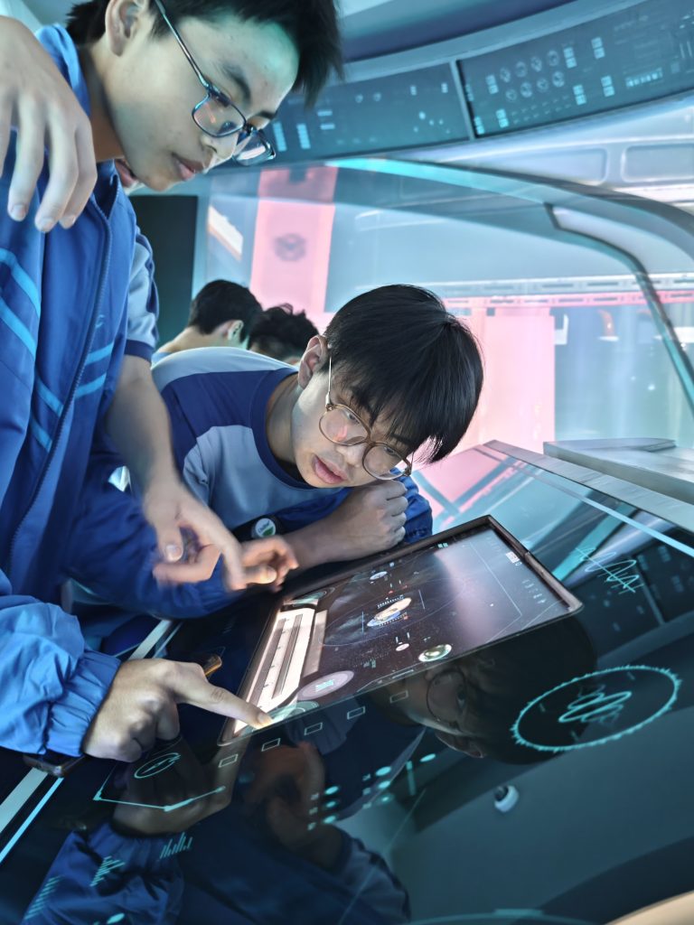 下午,師生一行轉赴珠海太空中心,開啟了激動人心的航太探索之旅。館內,1:1複刻的“天宮一號”空間站模型令同學們歎為觀止,仿佛親身漫步於太空家園。各類國產飛機模型及航天器實物,詳實述說著國家航空航太事業的奮鬥征程。學生們更是積極參與了飛機模擬飛行操作、多種AR互動設備體驗等專案,在沉浸式體驗中感受航太科技的無窮魅力與國之重器的磅礴力量。