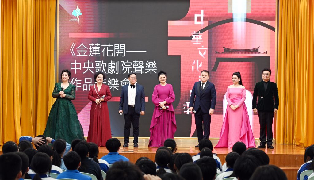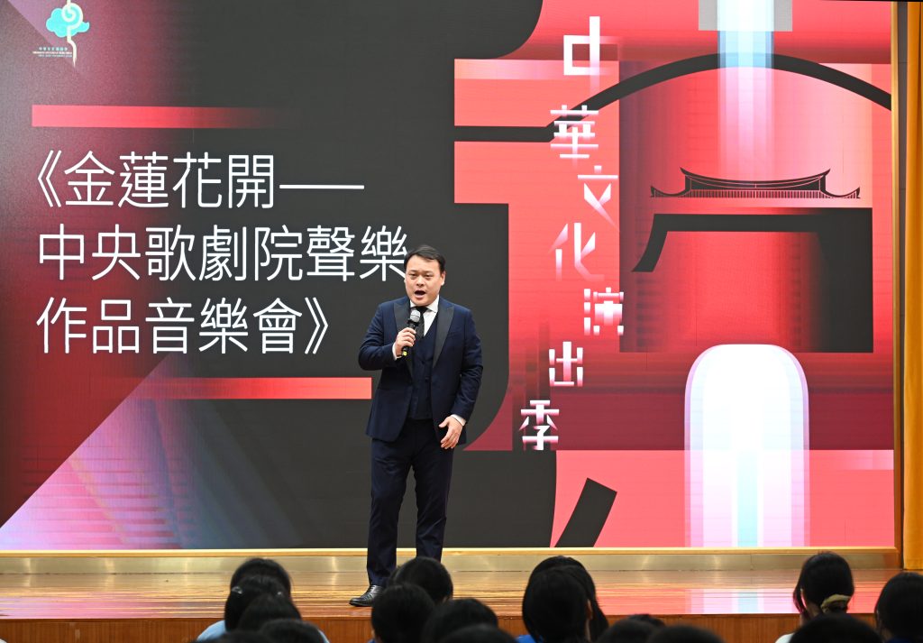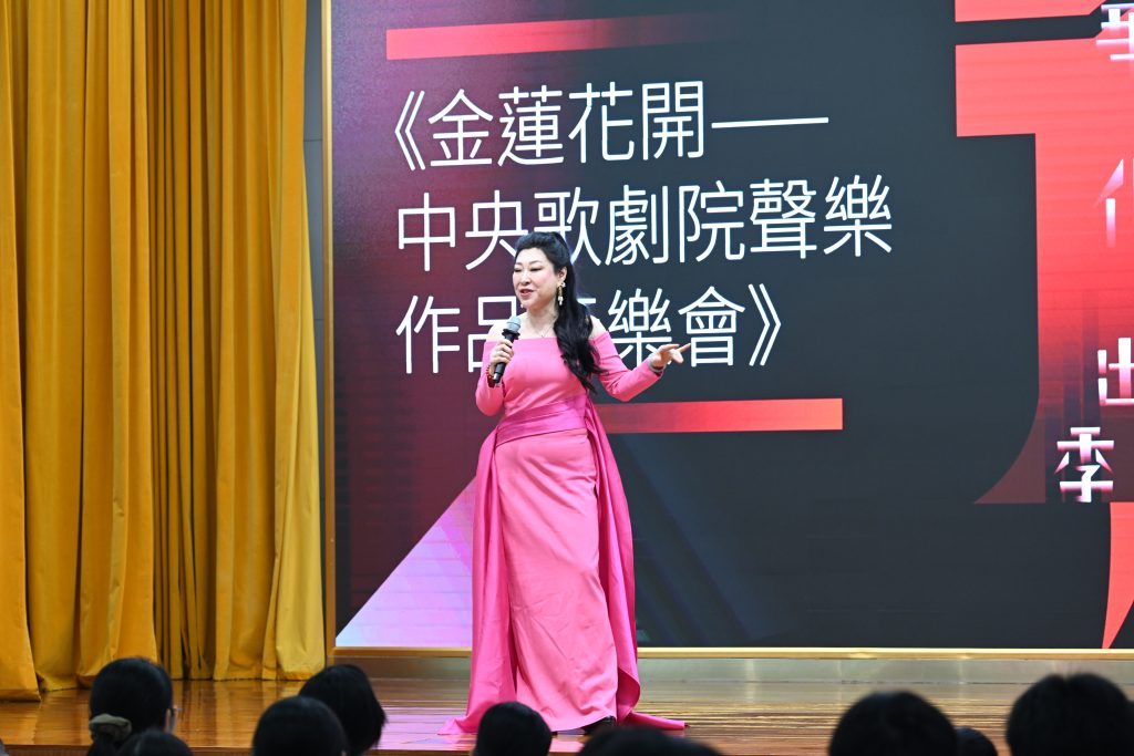 2026年1月16日,澳門工聯職業中學校園歌聲悠揚、暖意融融,中央歌劇院“金蓮花開——中央歌劇院聲樂作品音樂會”在此精彩上演。趙一巒、翟今起、阮余群、徐森、劉怡然、曹冬、么紅一眾國家級歌唱家親臨現場,以精湛技藝爲全校師生打造沉浸式藝術盛宴,讓高雅藝術走進校園,注入鮮活活力。