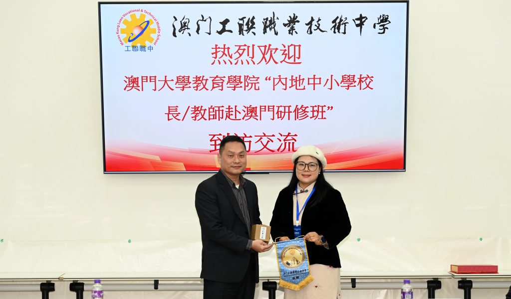 澳門大學教育學院「內地中小學校長/教師赴澳門研修班」學員走進澳門工聯職業技術中學訪校交流,由我校呂吉實校長、黃世平副校長及梁鑫主任熱情接待。