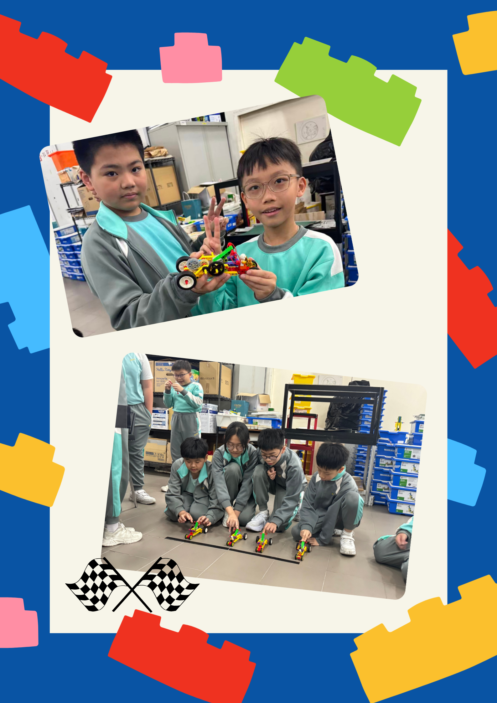 本校六年级學生參與科學館館校合作計劃的“玩樂高簡單機械:格蘭披治小賽車”工作坊,學生可利用樂高積木學習基礎機械知識。這一課便以滑輪這種常見的機械爲題,讓同學們利用樂高積木探索滑輪的用途及嘗試組裝工具,而他們應用知識製作了 “格蘭披治小賽車”樂高拼裝主題活動。