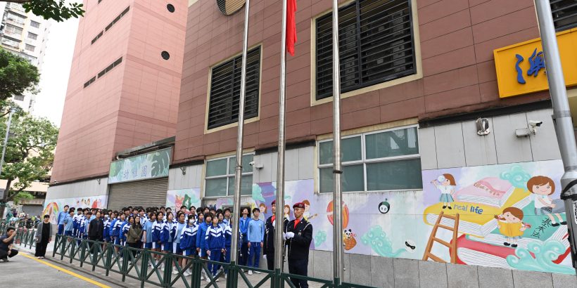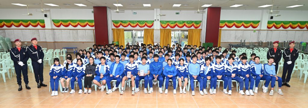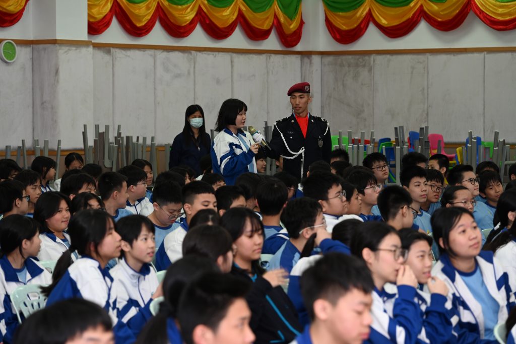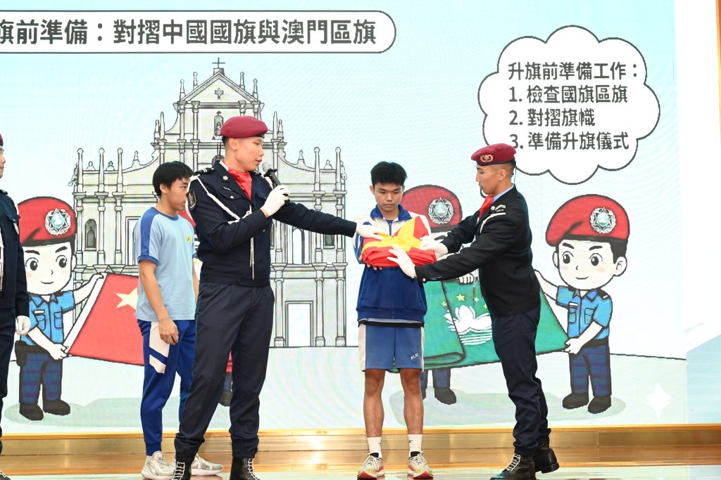 為深化愛國主義教育,增強師生國旗區旗意識,近日,我校特邀澳門治安警察局警官走進校園,分別為高中及初中師生舉行莊嚴的升旗儀式展示與國旗區旗知識講座。