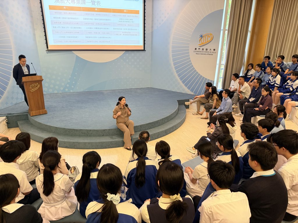 此外,導師還詳細介紹了該專業的顯著優勢:高三學年將為學生提供為期數月的實習機會,目前已獲得六大休閒企業及本地大型會展機構的全力支持,讓學生在真實崗位中積累實踐經驗,實現“校園學習”與“行業就業”的無縫對接;在升學方面,該專業與澳門旅遊大學等本地高等院校的相關本科專業(如旅遊會展及節目管理理學士學位課程)形成對口銜接,為學生搭建清晰的升學通道,助力學生實現更高層次的學業發展。