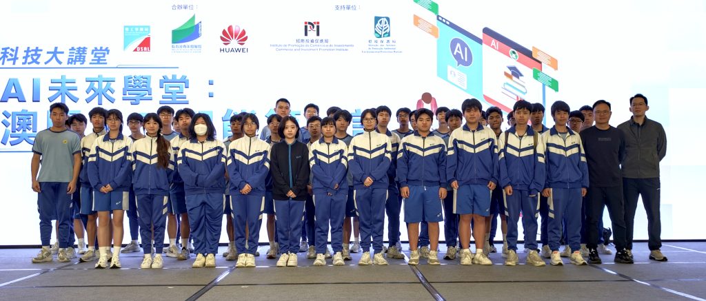 為推動本澳人工智慧教育普及,提升高中學生對前沿科技的認識與應用能力,由澳門勞工事務局、教育及青年發展局與華為合辦的「AI未來學堂:澳門人工智慧第一課」科技大講堂講座,(3月28日)在澳門威尼斯人金光會展會議廳順利舉行。講座結束後,學生亦參觀了同場舉行的「2026年澳門國際環保合作發展論壇及展覽」(MIECF),進一步拓展科技與環保視野。活動吸引來自多所中學的高中生踴躍參與,現場學習氣氛熱烈。