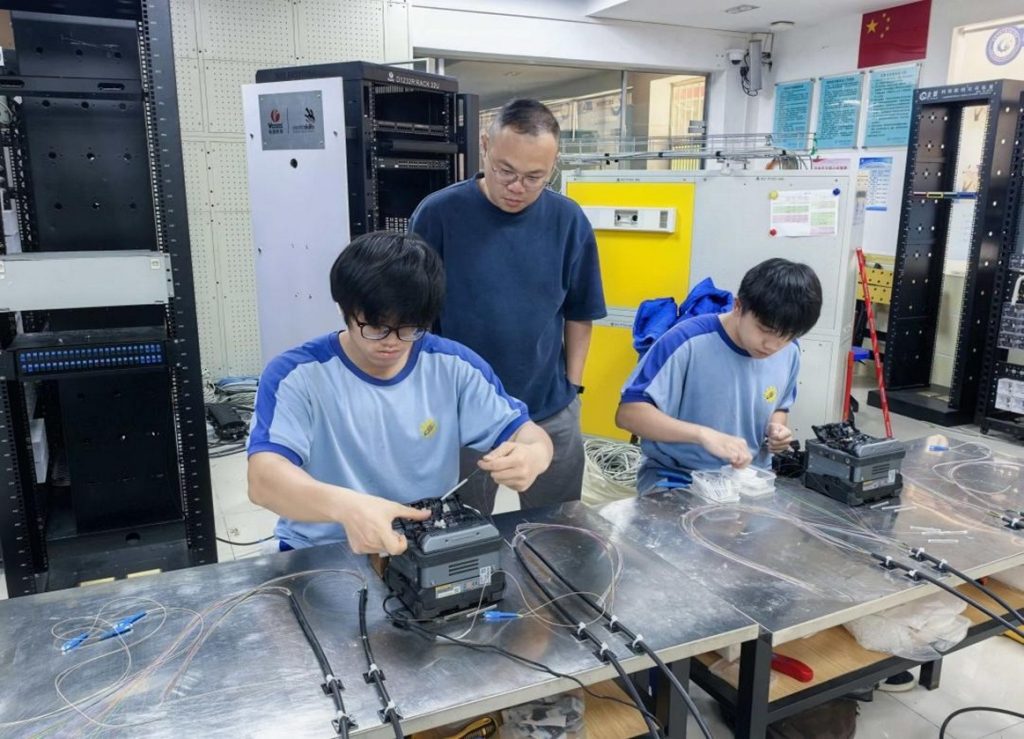 珠海理工團隊老師課堂指導工聯學生訓練光纜