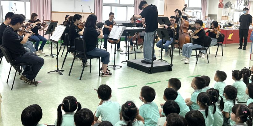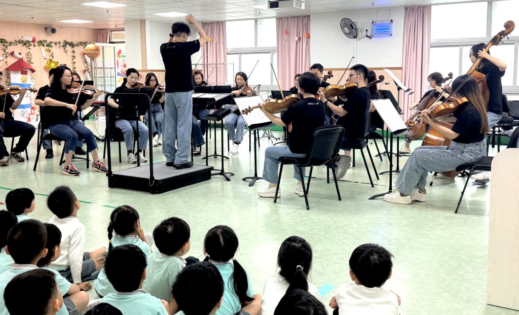 為啟發幼兒對音樂的興趣,提升藝術素養,本校幼稚園於4月28日特邀澳門樂團到校舉辦《樂種未來》校園音樂會。樂團演奏多首耳熟能詳的動畫及電影配樂,包括《影院之夜》、《玩轉極樂園》、《五星級大鼠》、《美女與野獸》,以及小朋友最熟悉的《冰雪奇緣》,最後以激昂的《GOLDEN》圓滿落幕,師生更一同隨著激昂的節奏律動,將活動氣氛推向高潮,沉醉於悠揚樂韻之中。
