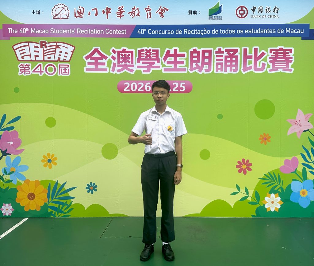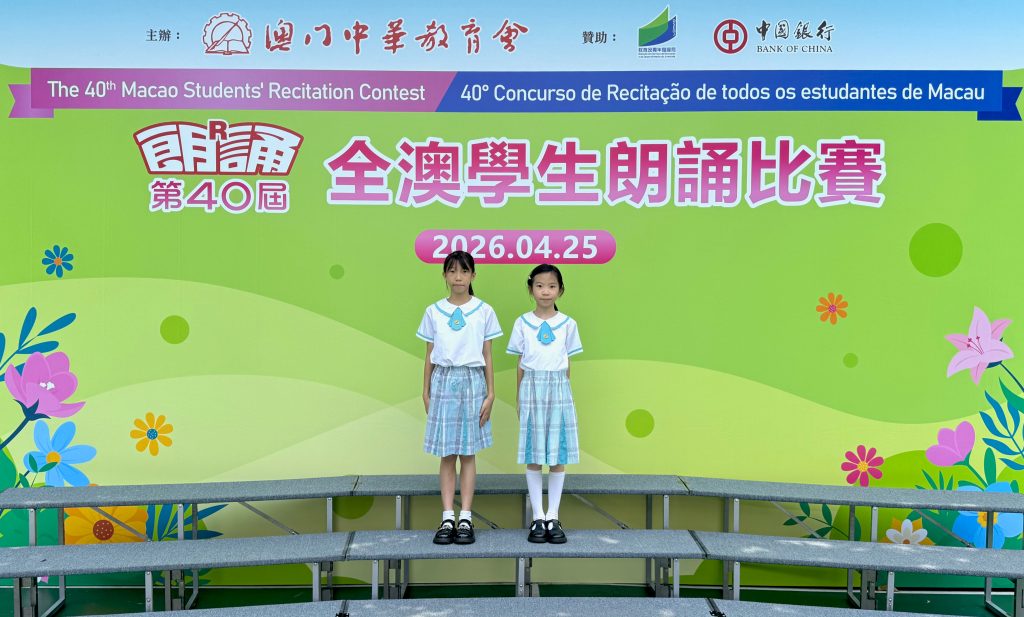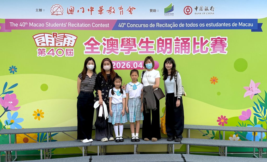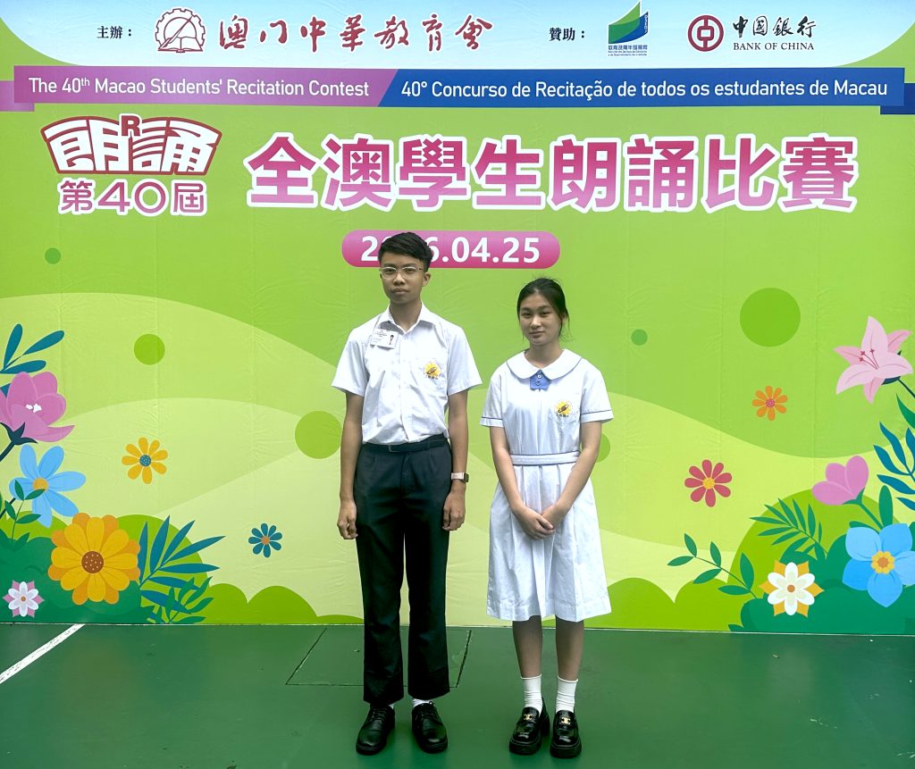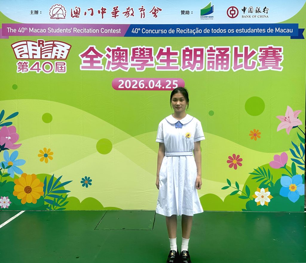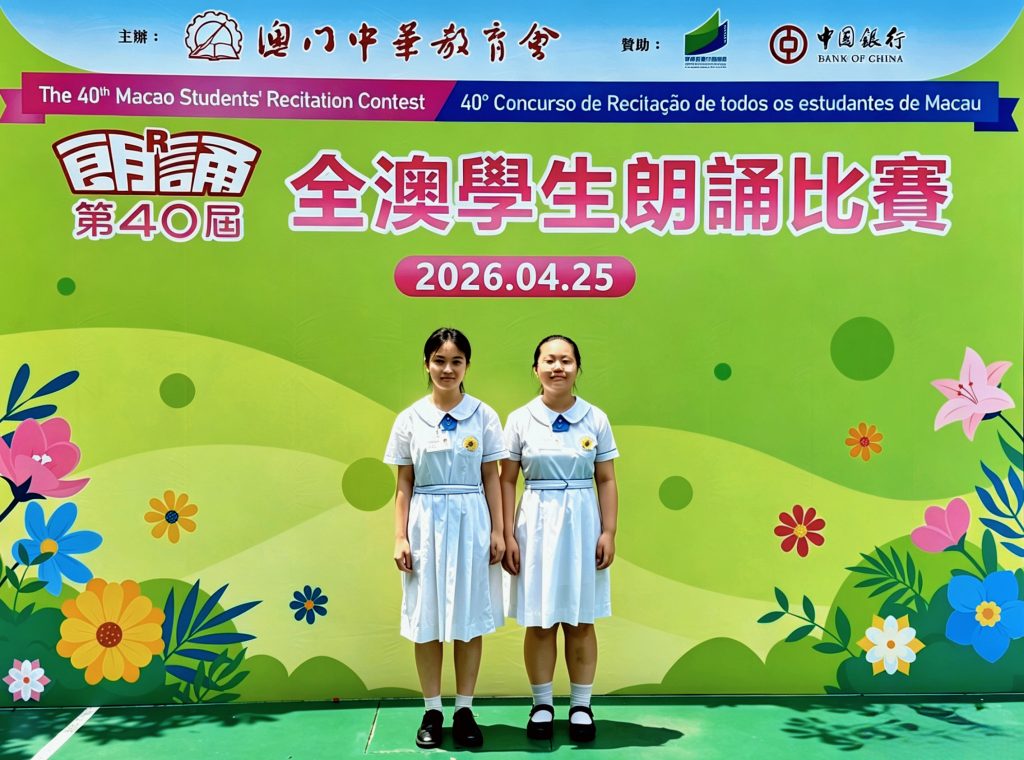 由澳門中華教育會主辦的「第40屆全澳學生朗誦比賽」,已於2026年4月25日(星期六)在濠江中學(正校部)圓滿舉行。本校中小學共12名學生喜獲獎項。