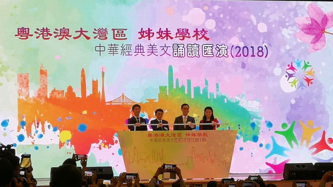 最近,粵港澳大灣區中華經典美文誦讀匯演活動在香港圓滿舉行,來自粵港澳三地的14對28所學校的師生參加了演出。廣東省教育廳副廳長朱超華、香港教育局局長楊潤雄、澳門教育暨青年局處長黃逸恒、香港中聯辦教科部調研員餘彬出席了活動,廣州、深圳、珠海、佛山、東莞、中山、肇慶、惠州、江門9市的教育局領導參加了活動,參加的粵港澳師生超過900人。