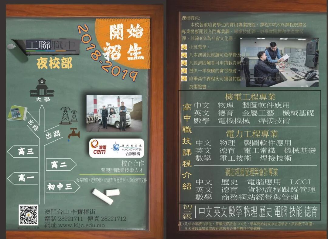 現在工聯職中夜校部正式面向澳門所有市民招生