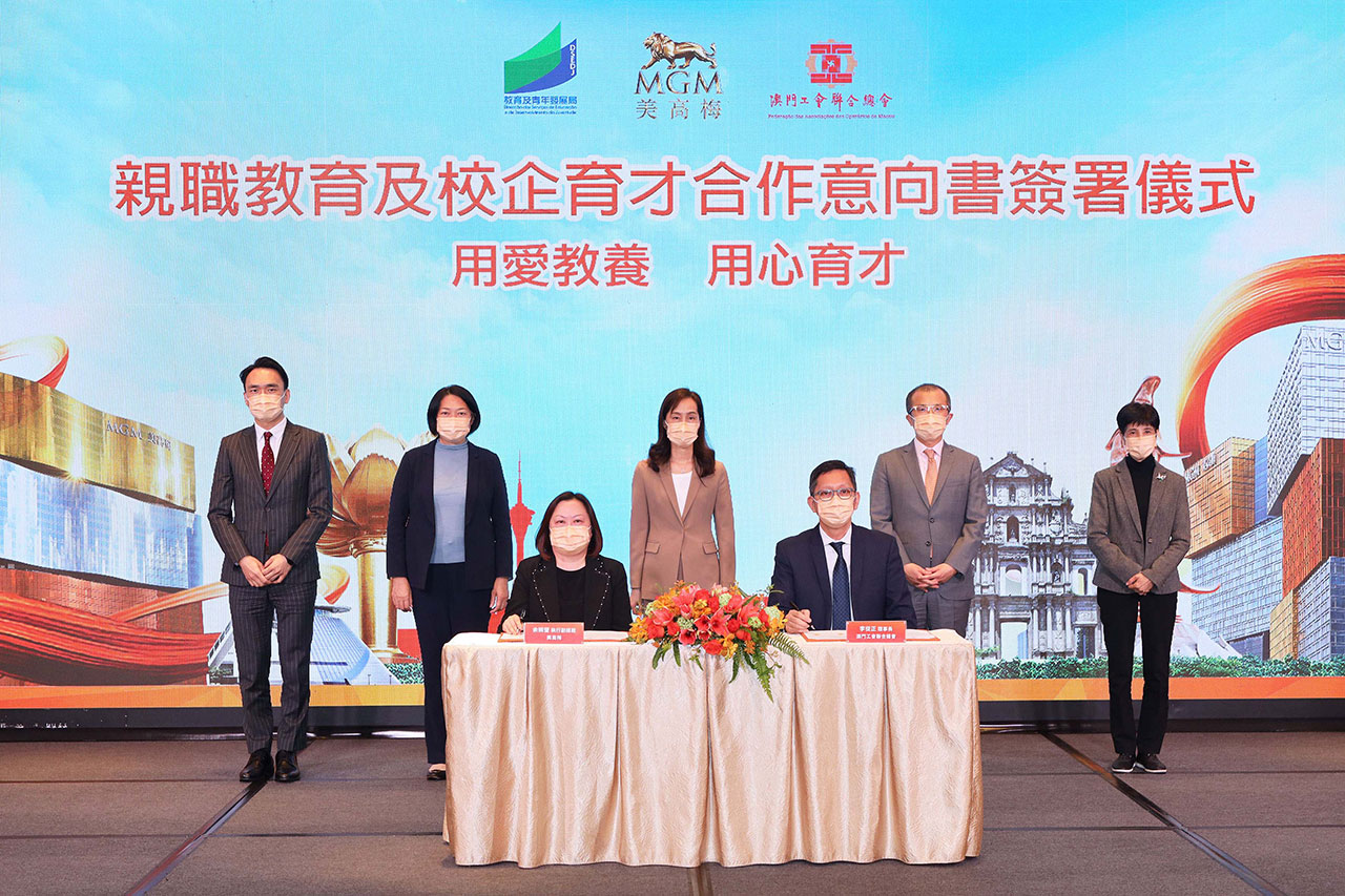 在社會文化司司長歐陽瑜、中央人民政府駐澳門特別行政區聯絡辦公室副主任嚴植嬋、美高梅金殿超濠股份有限公司(以下簡稱“美高梅”)總裁、首席戰略及財務官馮小峰先生的見證下,教青局局長龔志明和該公司人力資源執行副總裁余婉瑩於2022年4月19日簽訂了親職教育合作意向書。此後,教青局將與美高梅共同制訂親職教育員工培訓計劃,提升其員工對親子、教育、家庭等知識和能力。透過企業積極推動親職教育工作,協助開展各類家長教育及親子教育活動,務求從員工培訓層面,強化家庭教育功能,協助員工建構幸福家庭。