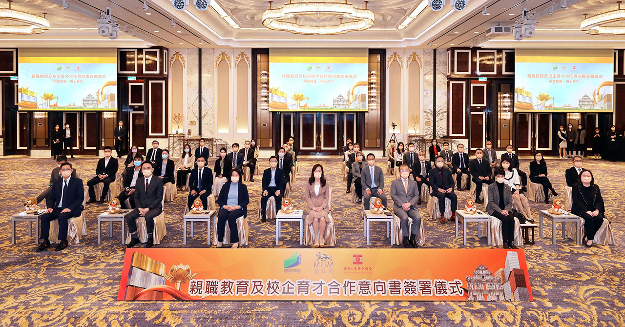 此外,為進一步推動職業技術教育課程的校企合作,美高梅同場亦與澳門工會聯合總會簽訂校企合作意向書,為澳門工聯職業技術中學拓展新的教育合作。日後,美高梅會向澳門工聯職業技術中學的資訊科技、特色金融與財務、物聯網應用技術等課程學生,提供實習和就業機會等,共同培育澳門職技人才。
